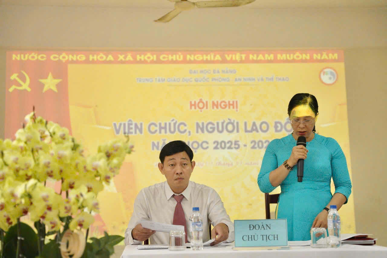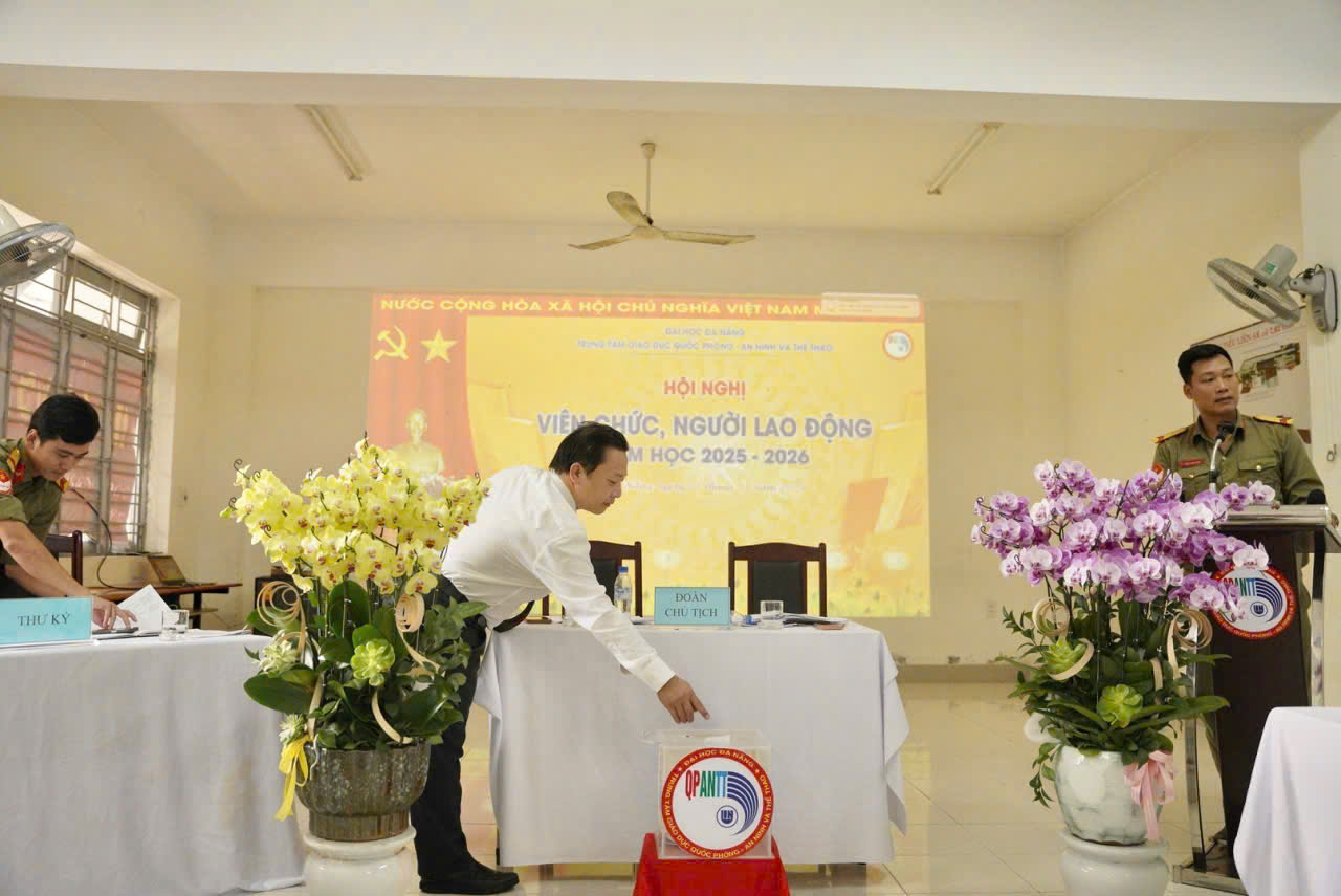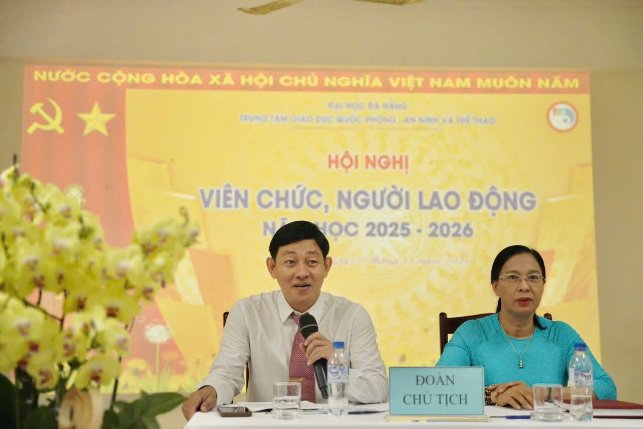 Sáng ngày 01/11/2025, Trung tâm Giáo dục Quốc phòng – An ninh và Thể thao (GDQPANTT), Đại học Đà Nẵng (ĐHĐN) đã tổ chức thành công Hội nghị viên chức, người lao động (VC-NLĐ) năm học 2025-2026. Đây là dịp để toàn thể VC-NLĐ cùng nhìn lại, đánh giá kết quả đã đạt được trong năm học 2024-2025; đồng thời thảo luận, thống nhất phương hướng, nhiệm vụ trọng tâm của năm học 2025-2026.