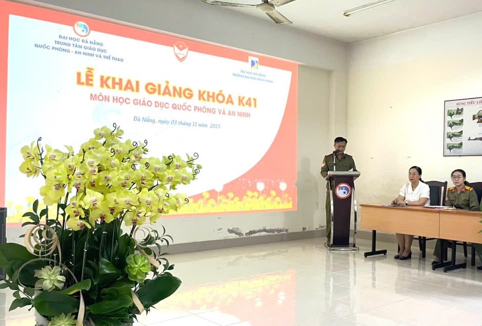 Sáng ngày 03 tháng 11 năm 2025, Trung tâm Giáo dục Quốc phòng – An ninh và Thể thao (GDQPANTT) trang trọng tổ chức Lễ Khai giảng khóa học giáo dục quốc phòng và an ninh (GDQPAN) cho sinh viên Khóa K41 đến từ Trường Đại học Bách khoa, Đại học Đà Nẵng (ĐHĐN). Dù trong điều kiện thời tiết tại Đà Nẵng những ngày qua không thuận lợi, mưa lũ, ngập lụt trên diện rộng, nhưng vẫn không làm ảnh hưởng đến tinh thần và nhiệt huyết của sinh viên Bách khoa tham gia môn học GDQPAN tại Trung tâm GDQPANTT, ĐHĐN.