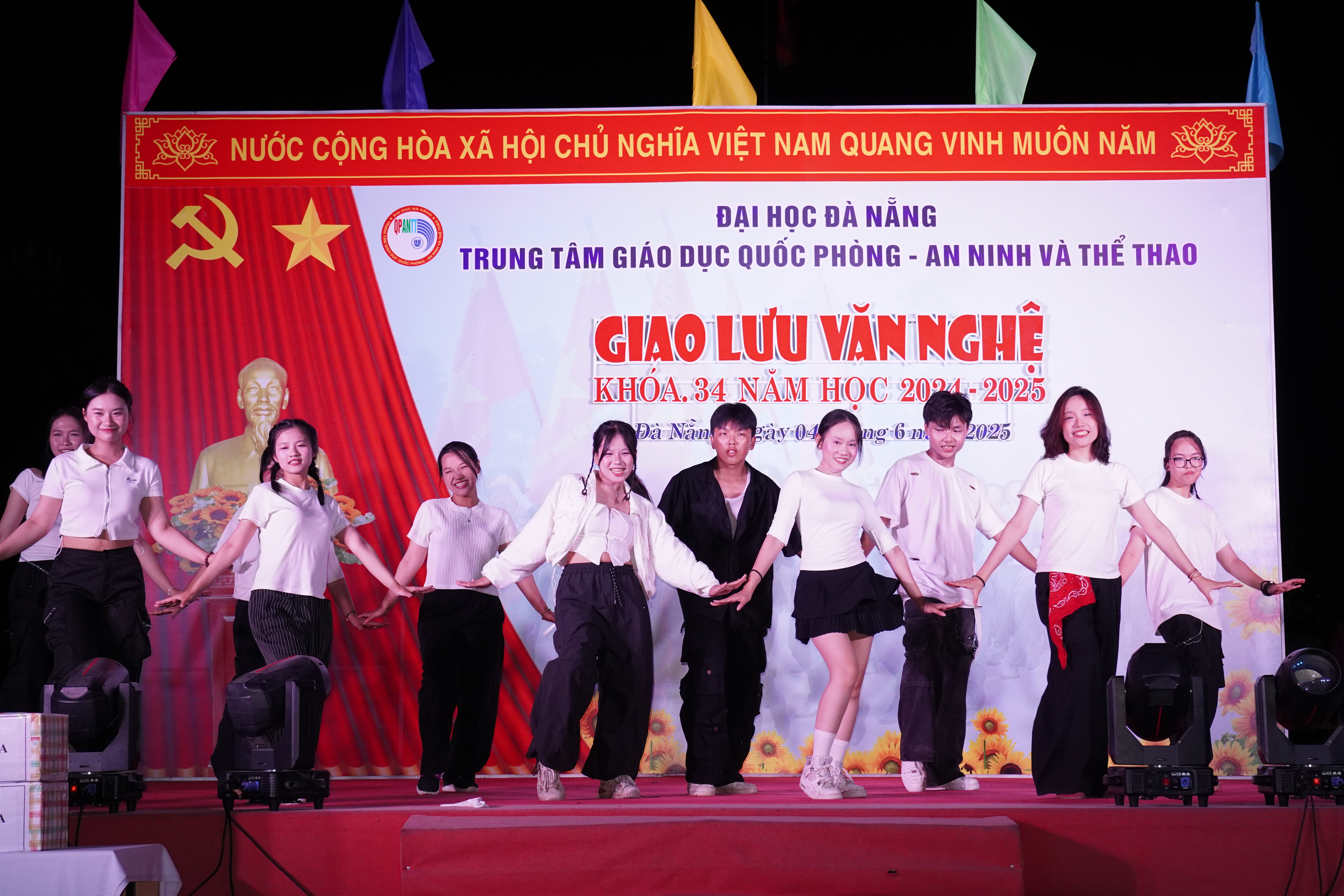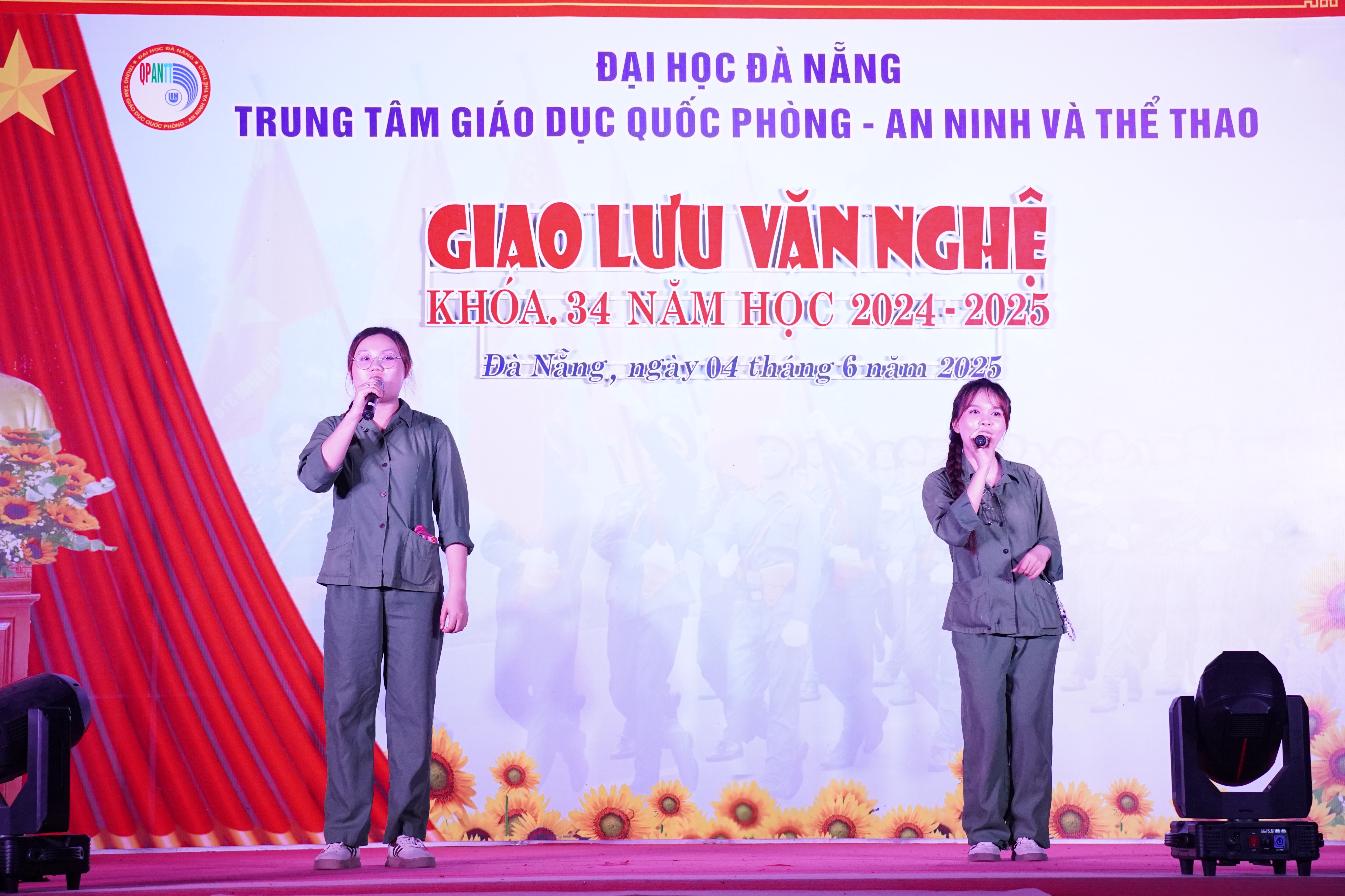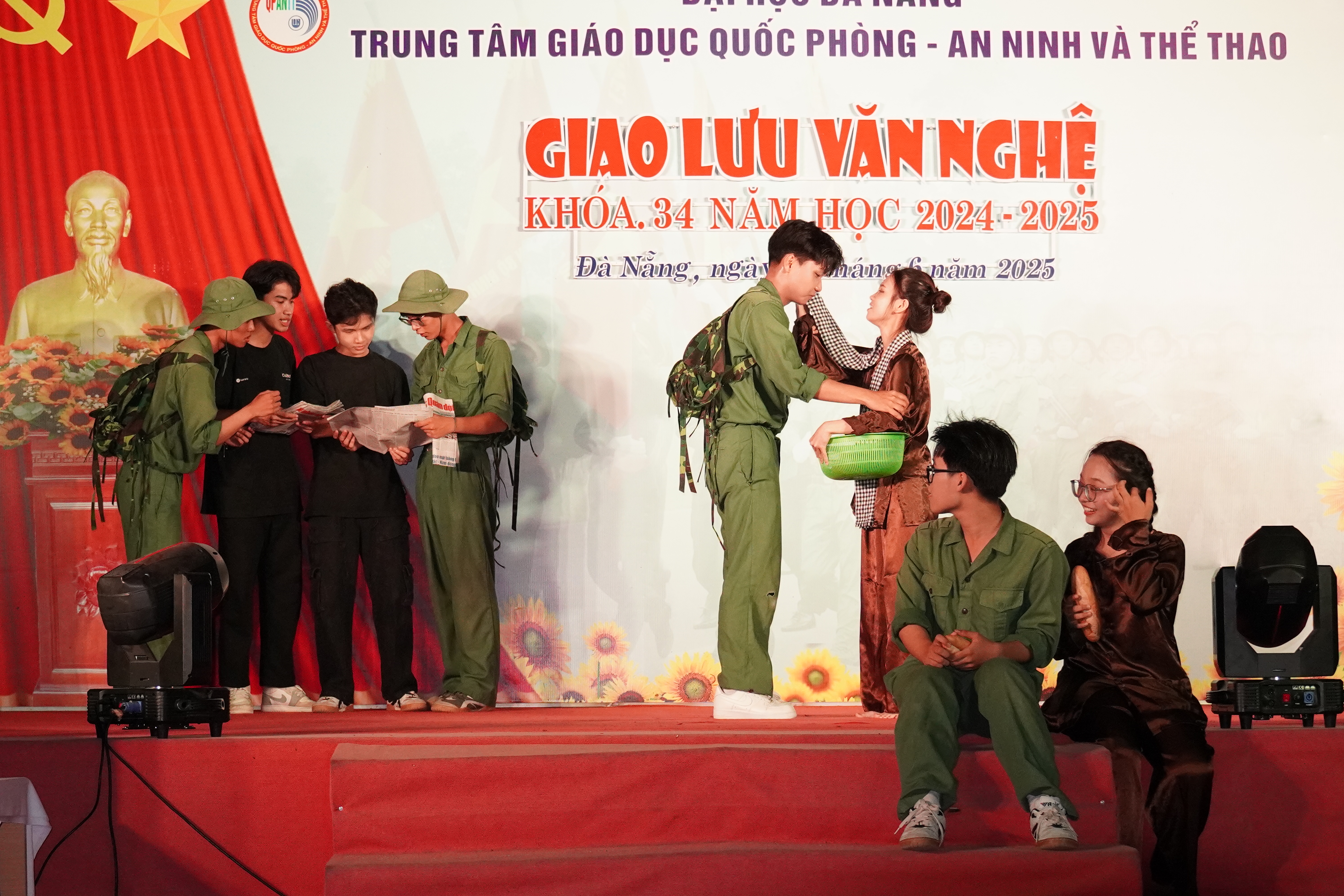 Trong cái nắng đặc trưng miền Trung, đêm ngày 04/6/2025 được sự cho phép của Chi bộ, Ban Giám đốc, Trung tâm Giáo dục Quốc phòng – An ninh và Thể thao (GDQPANTT), Đại học Đà Nẵng (ĐHĐN) đã tổ chức thành công buổi giao lưu văn nghệ với chủ đề “Hoa lửa thao trường” cho các bạn sinh viên Khóa K34-D54 đến từ Trường Đại học Kinh tế. Đây là một trong những hoạt động có ý nghĩa của Trung tâm, tạo nên một sân chơi đầy ý nghĩa cho các bạn sinh viên sau những ngày học tập và rèn luyện tại đây. Sự kiện không chỉ là dịp để các bạn giao lưu, gặp gỡ, xây dựng tinh thần đoàn kết mà còn là cơ hội để lan tỏa ý chí, niềm đam mê học tập, rèn luyện, khơi dậy trách nhiệm của thế hệ trẻ trong sự nghiệp xây dựng và bảo vệ Tổ quốc Việt Nam xã hội chủ nghĩa.