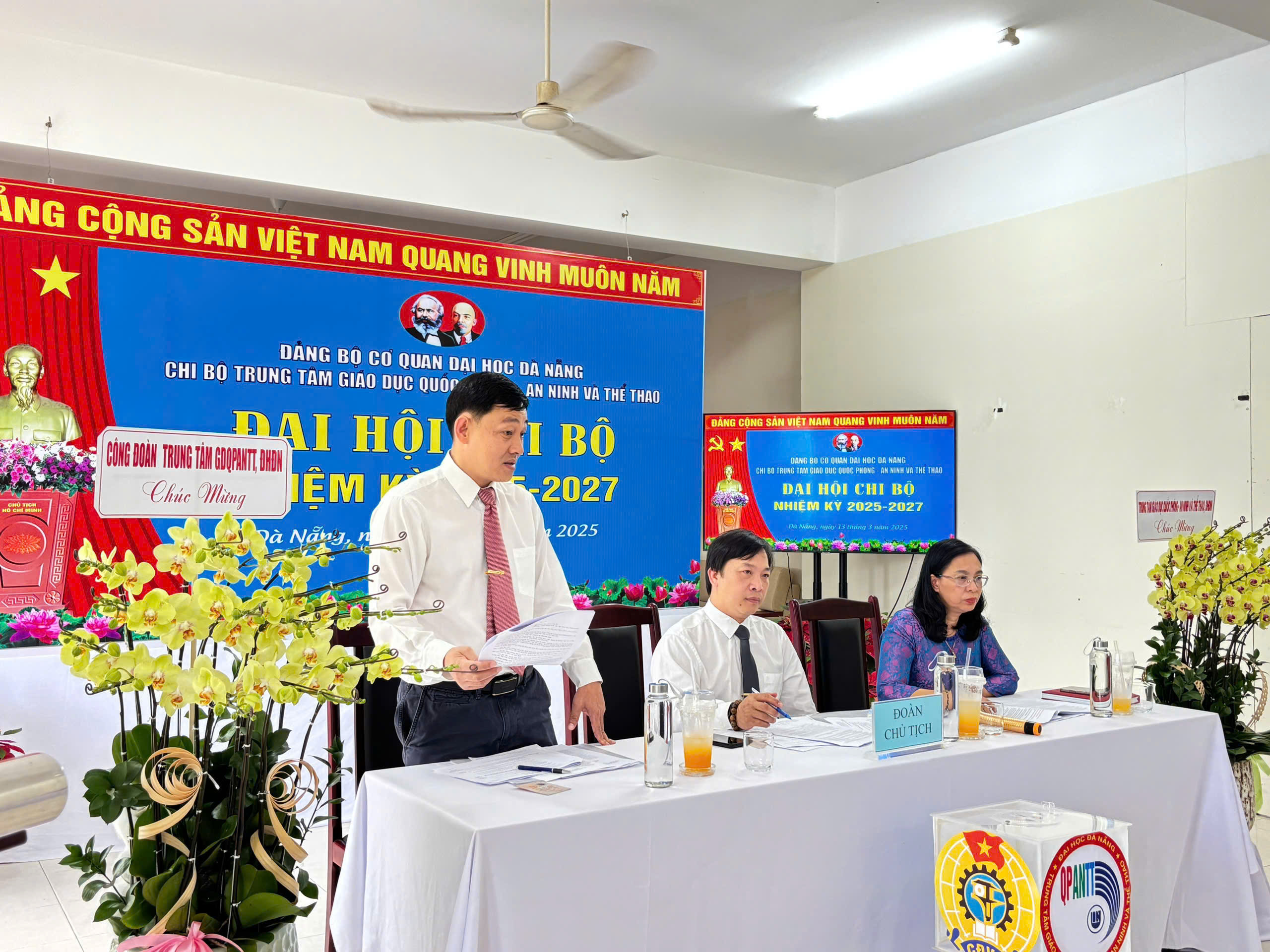 Tại Đại hội, đồng chí Trần Thanh Điệp, Bí thư Chi bộ nhiệm kỳ 2022-2025, đã trình bày báo cáo chính trị, đánh giá kết quả công tác của Chi bộ Trung tâm GDQPANTT, ĐHĐN trong nhiệm kỳ 2022-2025. Báo cáo nêu rõ những kết quả đạt được, đồng thời thẳng thắn chỉ ra các hạn chế, tồn tại và đưa ra bài học kinh nghiệm quý báu trong lãnh đạo các công tác của Chi bộ.