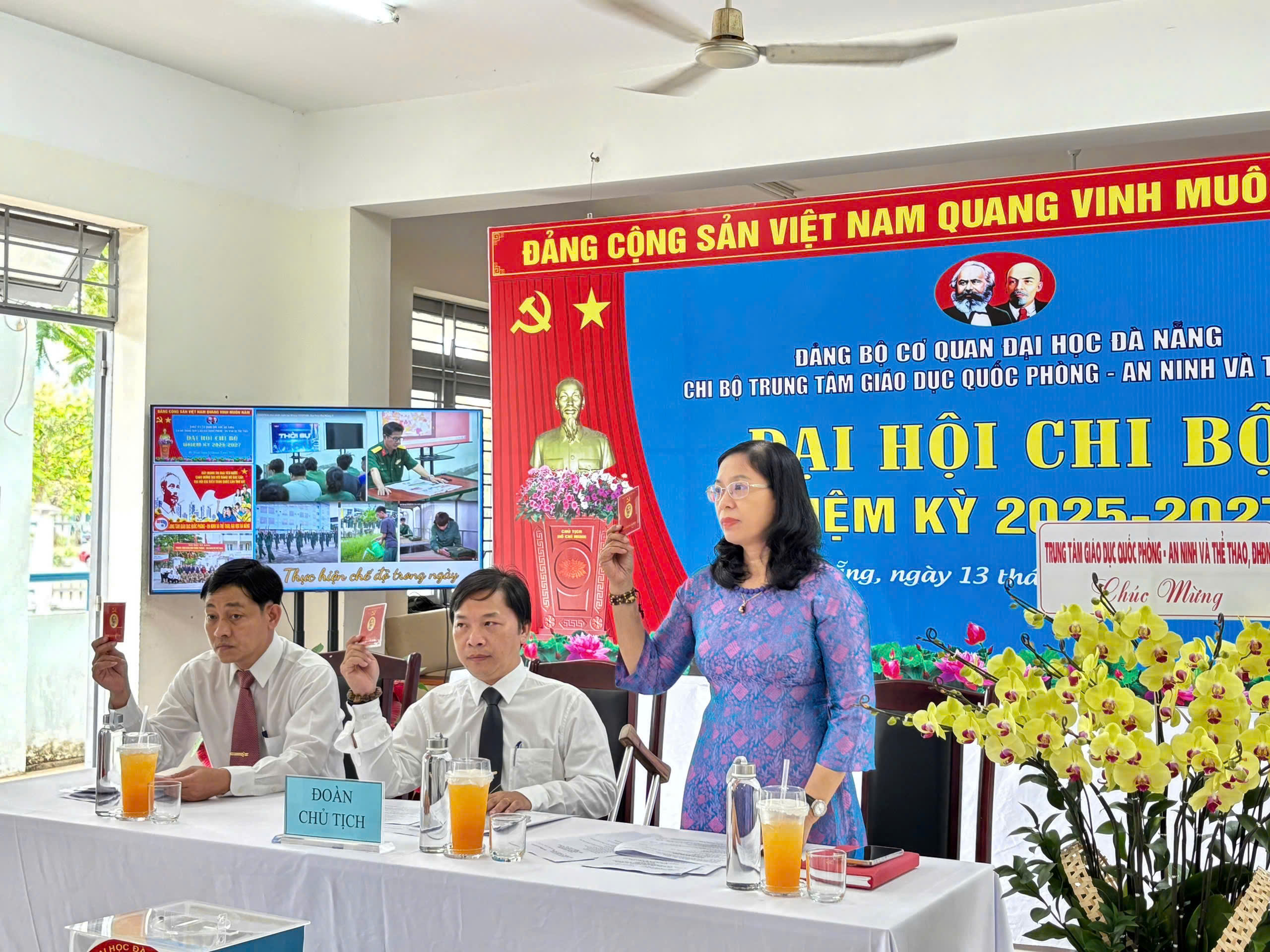 Tiếp thu ý kiến chỉ đạo của đồng chí Hồ Phan Hiếu, Đại hội Chi bộ đã thông qua Nghị quyết nhiệm kỳ 2025-2027, khẳng định quyết tâm phát huy kết quả đã đạt được, khắc phục những tồn tại và nâng cao năng lực lãnh đạo công tác chuyên môn và công tác xây dựng Đảng. Đại hội cũng đã đặt ra mục tiêu xây dựng Chi bộ Trung tâm GDQPANTT, ĐHĐN trong sạch, vững mạnh, nâng cao chất lượng hoạt động, góp phần quan trọng vào sự phát triển chung của ĐHĐN.