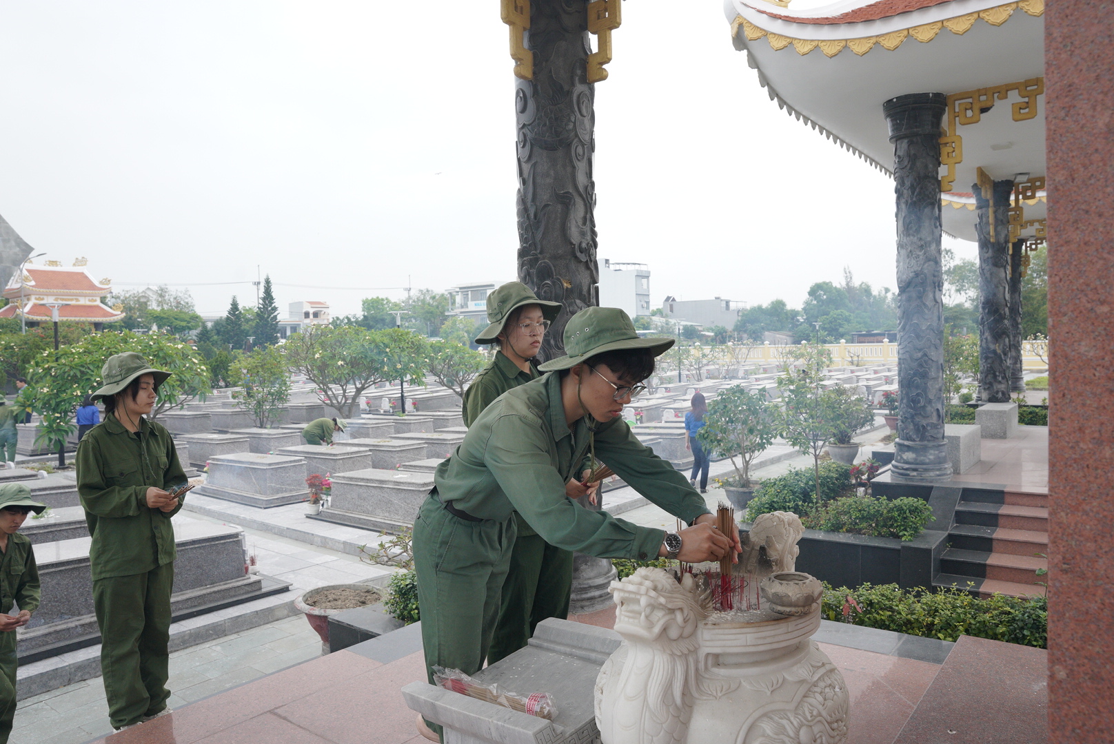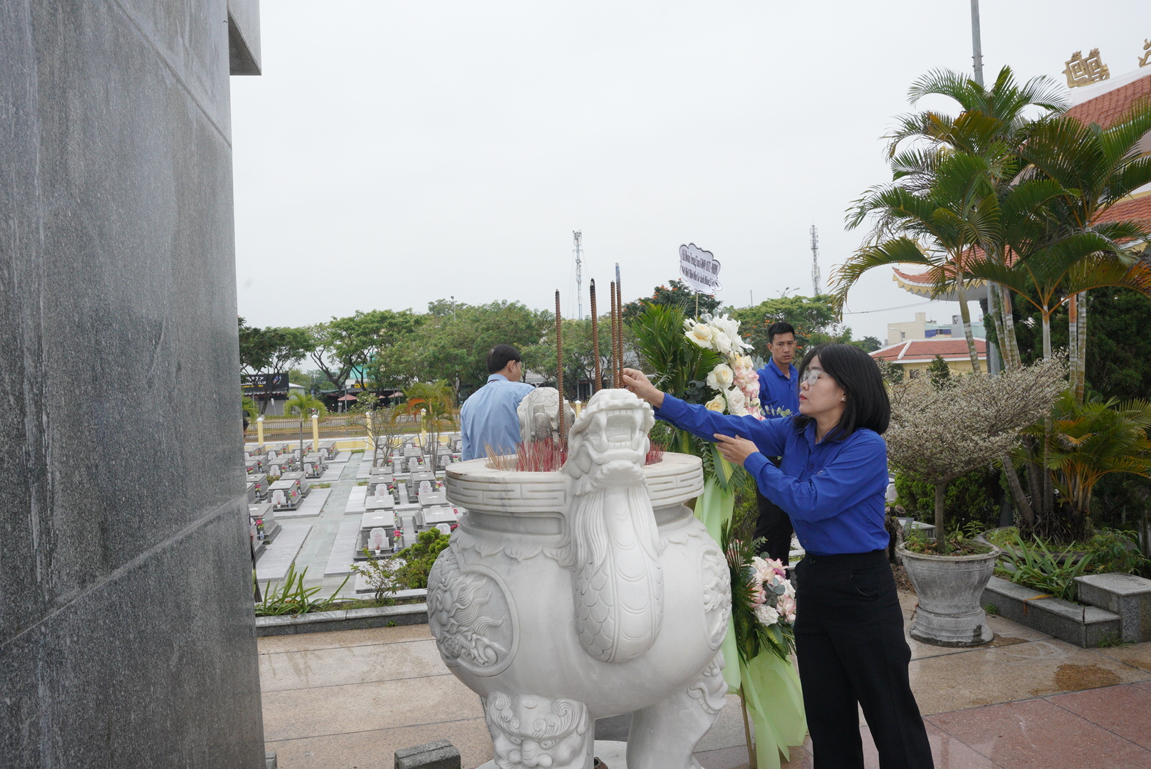 dâng hương tại đài tưởng niệm