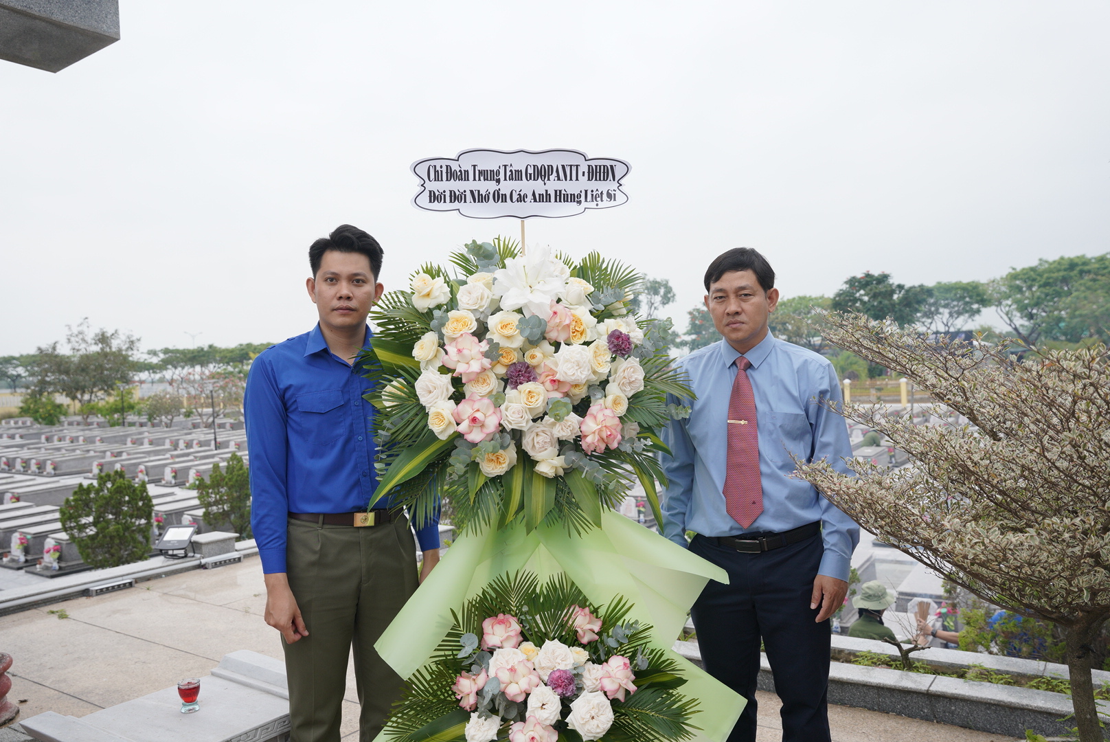 Nằm trong chuỗi hoạt động Chào mừng kỷ niệm 95 năm Ngày thành lập Đoàn Thanh niên Cộng sản Hồ Chí Minh (26/3/1931 – 26/3/2026). Sáng ngày 25/3/2026, tại Nghĩa trang Liệt sĩ Hoà Quý, hơn 30 cán bộ giảng viên của Trung tâm Giáo dục Quốc phòng – An ninh và Thể thao (GDQPANTT), Đại học Đà Nẵng (ĐHĐN) cùng đại diện các sinh viên Khoá K46 đến từ Trường Đại học Ngoại ngữ (UFLS) đang học tập tại Trung tâm đã trang nghiêm tổ chức lễ dâng hương, tưởng niệm các Anh hùng liệt sĩ.