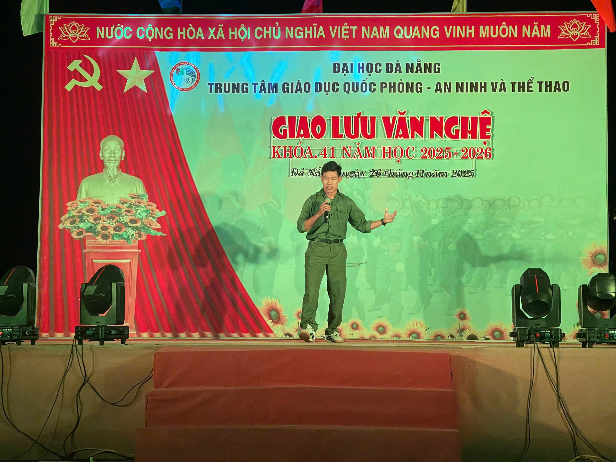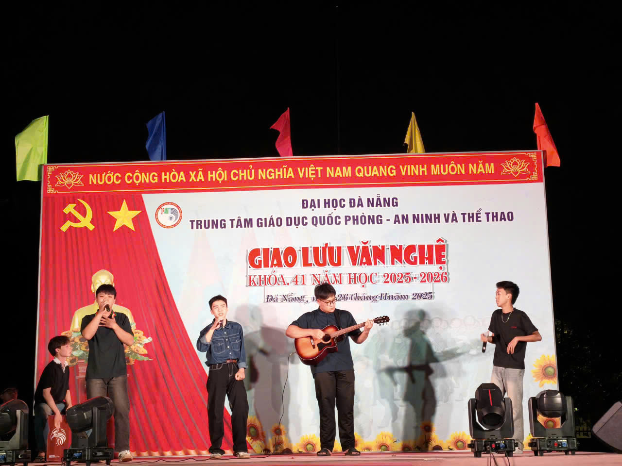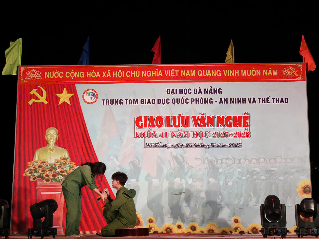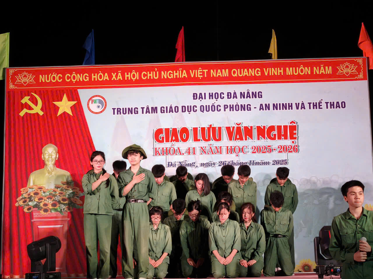 Đêm ngày 26 tháng 11 năm 2025, tại Trung tâm Giáo dục Quốc phòng – An ninh và Thể thao (GDQPANTT), Đại học Đà Nẵng (ĐHĐN), chương trình văn nghệ mang chủ đề “Lửa thanh xuân, sắc áo lính” đã diễn ra trong không khí trang trọng, đầm ấm và tràn đầy cảm xúc. Đêm diễn là sự hòa quyện giữa âm nhạc, ánh sáng và cảm xúc; là nơi những câu chuyện được kể bằng giai điệu, những ký ức được thắp lên bằng ngọn lửa nhiệt thành của thế hệ hôm nay.