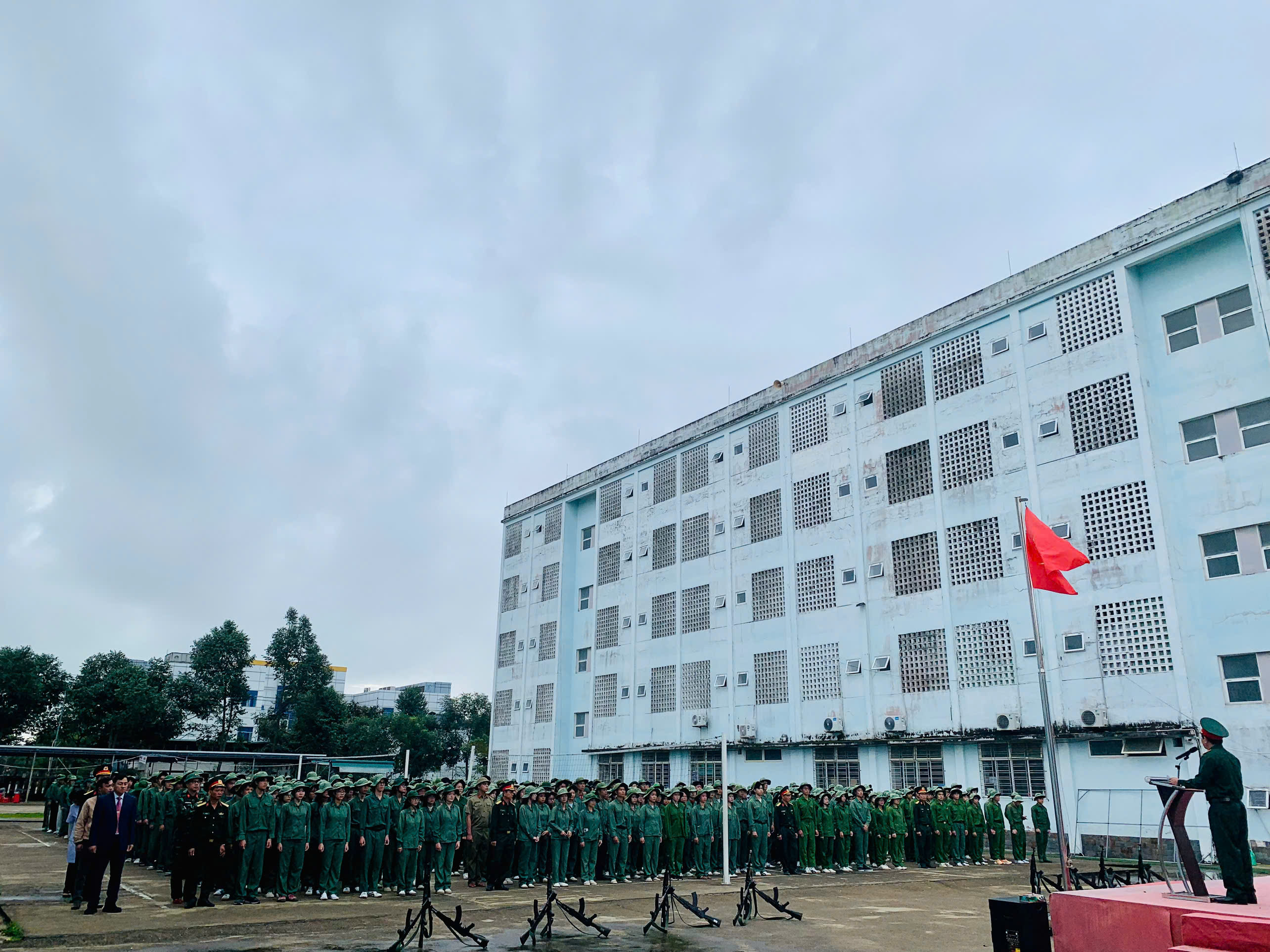 Toàn cảnh tập trung đội hình chuẩn bị Lễ chào cờ