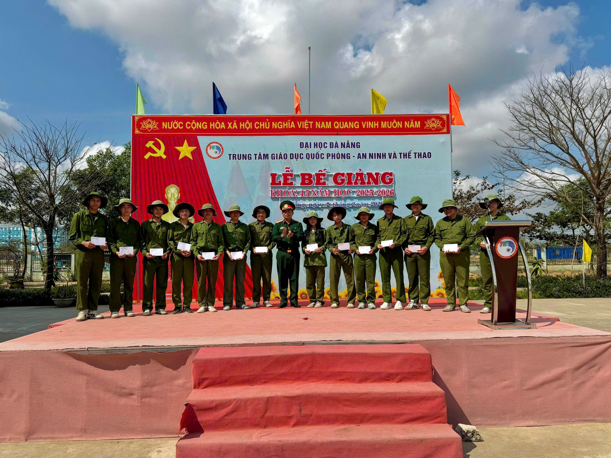 Sáng ngày 07/02/2026, Trung tâm Giáo dục Quốc phòng – An ninh và Thể thao (GDQPANTT), Đại học Đà Nẵng (ĐHĐN) đã trang trọng tổ chức Lễ Bế giảng cho sinh viên Khoá 45 đến từ Trường Đại học Sư phạm Kỹ thuật, ĐHĐN. Tham dự và chủ trì Lễ Bế giảng có Đại tá…