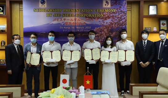Chiều ngày 16/03/2022, Đại học Đà Nẵng (ĐHĐN) phối hợp với Tập đoàn Thép JFE, Nhật Bản tổ chức trao 08 suất học bổng với tổng kinh phí 390.000Y (tương đương khoảng 82 triệu đồng) cho sinh viên ĐHĐN. Toàn cảnh buổi Lễ tại điểm cầu ĐHĐN Đây là những sinh viên vượt khó, đạt thành…