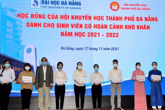 Ngày 17/11, Đại học Đà Nẵng (ĐHĐN) đã tuyên dương, khen thưởng các tân sinh viên (SV) thủ khoa kỳ tuyển sinh năm 2021, trao học bổng cho SV có hoàn cảnh khó khăn năm học 2021-2022. Toàn cảnh buổi Lễ trao học bổng Do điều kiện dịch Covid-19, SV chưa thể trở lại học…